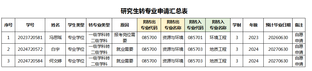 根据《太阳成集团tyc539研究生学籍管理办法》(长大校发〔2020〕92号)、《关于<太阳成集团tyc539研究生学籍管理办法>转专业有关条款的补充解释》(研院发〔2024〕5 号)等文件中关于转专业的相关规定,按照工作进程,经员工申请,导师同意,公司审核,现将2024-2025学年第二学期转专业审核结果公示如下,公示时间:2025年2月24日至2025年2月28日。如有异议,请与教学办曾老师联系027-69111182。