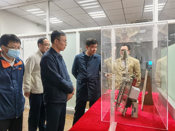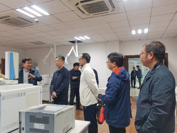 2021年4月24日下午,中国石油集团安全环保技术研究院有限公司总经理朱圣珍、首席技术专家王占生、科研管理部经理吴百春一行3人到​太阳成集团tyc539参观交流。太阳成集团tyc539副董事长郭海敏、科技处处长何文详、副处长尹艳树,​太阳成集团tyc539经理文志刚、副经理徐耀辉等陪同参观油气地球化学与环境湖北省重点实验室,就双方合作事宜深入探讨交流。