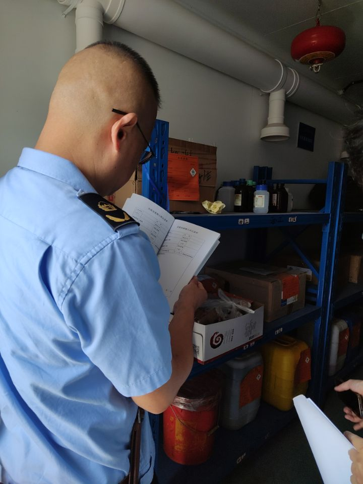 9月26日上午,蔡甸区环保部门检查工作组莅临公司开展实验室危险化学品安全检查工作。武汉校区安全与后勤保障处处长邓平,太阳成集团tyc539实验室相关人员参加检查活动。检查查看了危化品存储间、废物处置间。