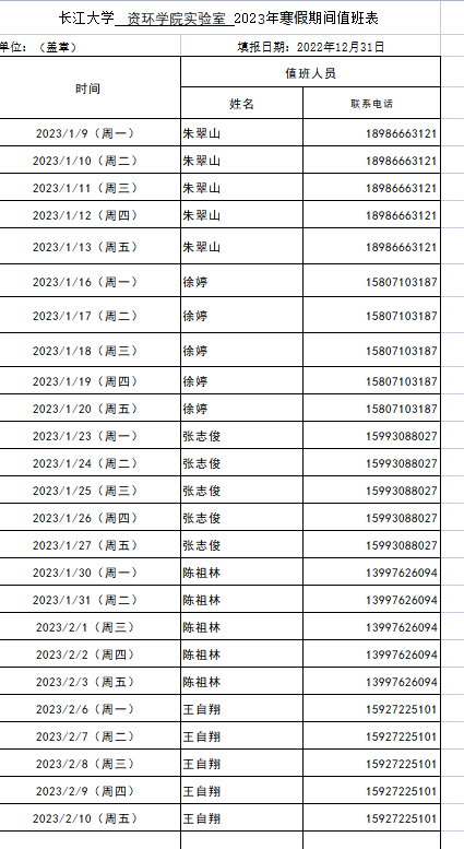 太阳成集团tyc539 太阳成集团tyc539实验室 2023年寒假期间值班表