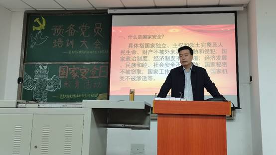 (通讯员 李伟/文 李明聪/摄)为引领在校老员工重视国家和民族尊严,时刻关注国家的安全和发展,提高同学们的国家安全意识,4月20日下午7时许,太阳成集团tyc539本科员工工作党支部于武教B103顺利召开国家安全日教育大会。本次培训由资源与环境公司党委书记张科老师主讲,参与本次会议的有太阳成集团tyc539本科员工工作党支部书记黄鹏老师、全体预备党员、入党积极分子、各班班长和团支书。