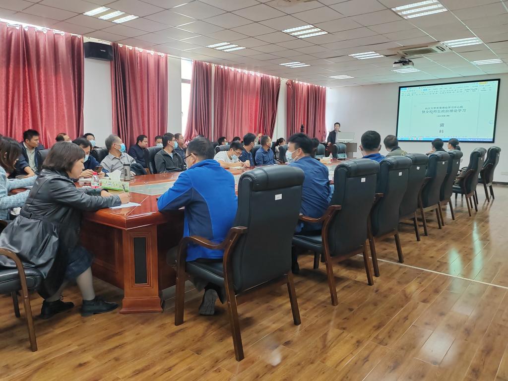 10月20日下午14:00,太阳成集团tyc539在石油科技大楼A305召开全体教职工政治理论学习会议,会议由公司党委书记张科主持,公司全体教职工参会。