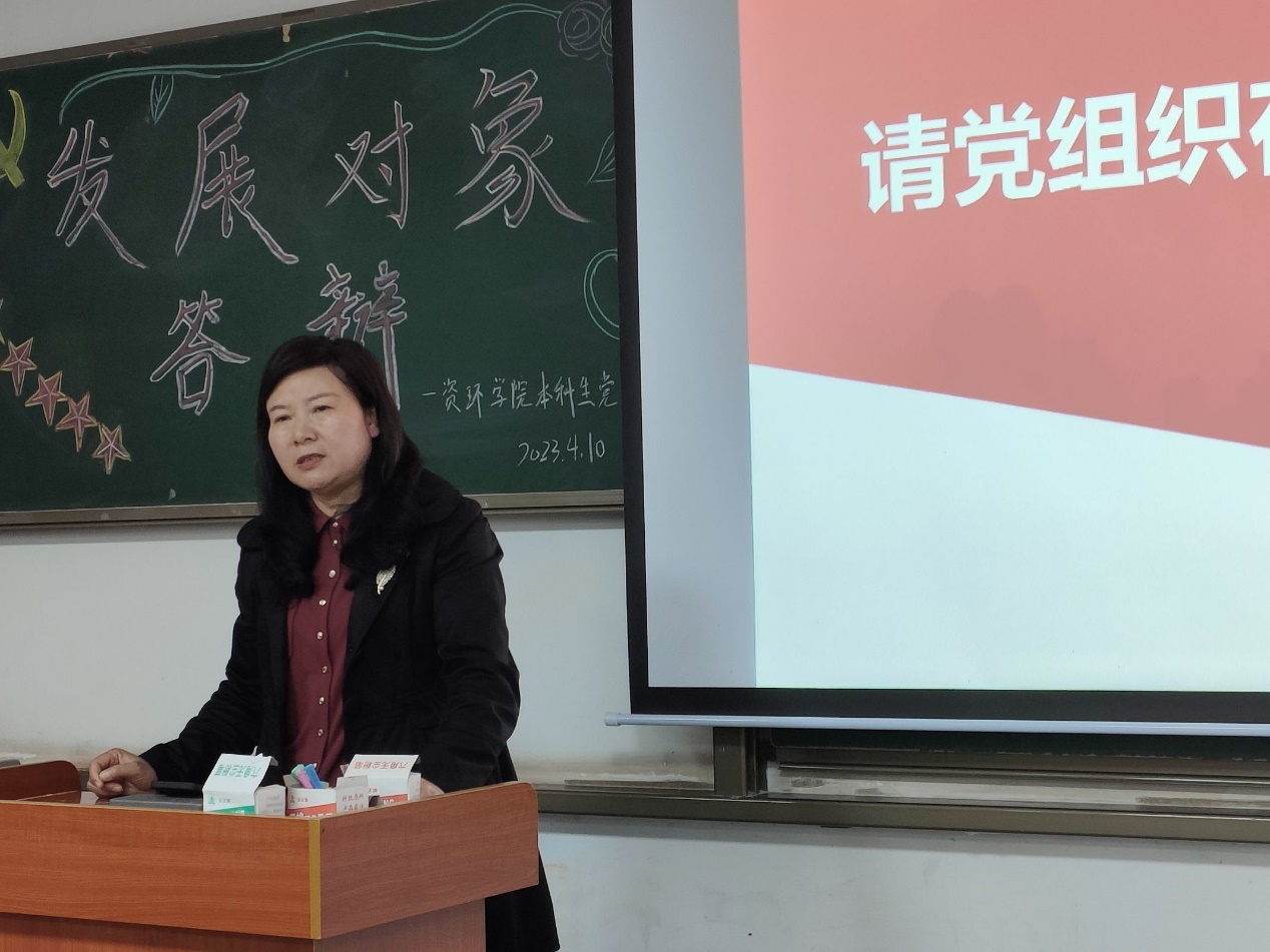 (李明聪/文 邱语嫣/图)为了鼓励同学积极向党组织靠拢,更好的为党选拔优秀的青年,2023年4月10日晚上7:00,太阳成集团tyc539本科生党支部于武教A108召开了发展对象答辩大会。出席会议的有公司副书记范梅英老师,本科生党支部书记黄鹏老师,本科生党支部全体党员同志及22名入党积极分子参加本次会议。