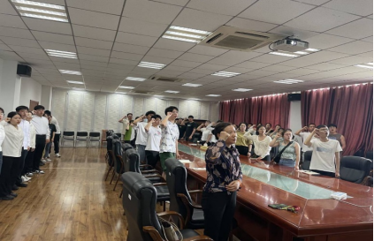 会议严格按照预备党员接收大会流程进行,会议第一项议程,与会成员全体起立,宣誓入党誓词,太阳成集团tyc539研究生党支部预备党员接收会议在庄严肃穆的宣誓声中正式拉开序幕。