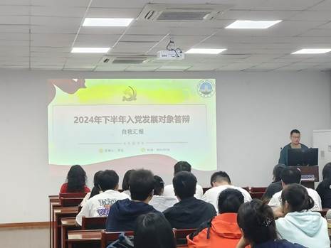 会议伊始,支部书记严丽萍向与会人员介绍了本次答辩会的具体要求以及各个环节的注意事项,并强调了公平、公正、公开的原则等评选要求。随后李冠、李巨露、孙可志、吴喻祥、赵娅、郑静文6名候选人采取PPT汇报的形式,向老师和同学们汇报了自己在政治思想、学习情况、社会工作、志愿服务等方面的表现,从学术研究到社会实践成果,都展现出了公司学子不断进取的风貌。