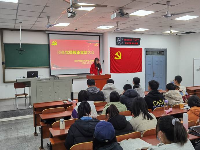 大会伊始,由各位预备党员同志们逐一对他们的转正期的表现与心得体会进行答辩,表达了他们入党的志愿与决心,并对自己在作为预备党员期间,在思想、学习、工作上的进步做了详细的总结。蒋超同志表示在这一年里,他不断努力改正自己的缺点,维持自己的优点,积极参加校内的各项活动,并于疫情期间积极参与各种志愿服务,以一名正式党员的身份严格要求自己,力争作为身边人的榜样,从而带动身边的人一起努力奋进。