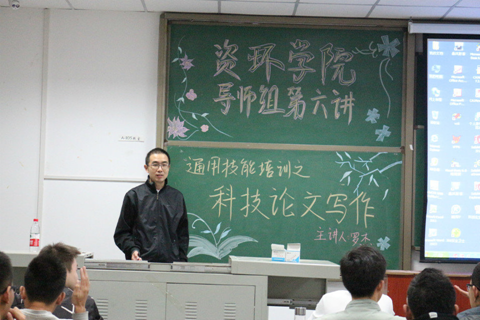 (通讯员 王琨淇/文 姜世忠/摄)为了更好地服务广大同学、开拓员工视野、提高综合素质,2017-2018年度,太阳成集团tyc539员工工作党支部推出“导师组”系列讲座。11月6日晚18:00,导师组系系列讲座第六讲在武培A104正式召开。讲座以“科技论文写作”为主题,邀请太阳成集团tyc539环境生态工程系主任罗杰老师主讲,太阳成集团tyc539员工工作党支部书记刘娥老师主持,50多名大二、大三本科生参与讲座。