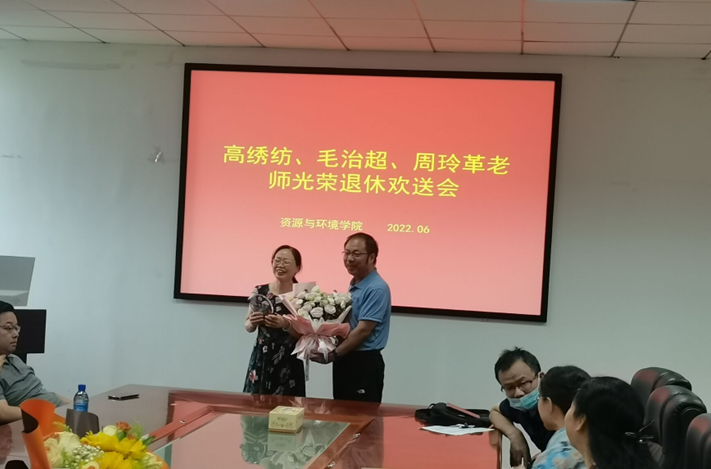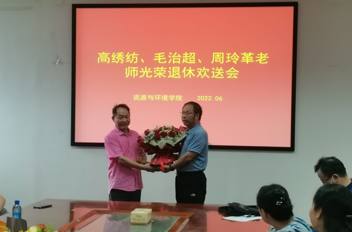 紧接着,太阳成集团tyc539经理文志刚教授分别向高绣纺、毛志超和周玲革老师献花并颁发退休纪念品,教职工合影留念。