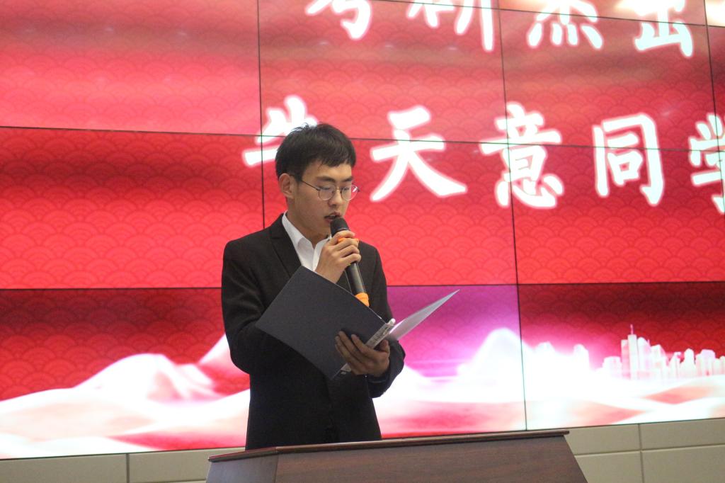 大会第四项,考研杰出代表——牛天意同学发言。牛天意向同学们述说了他的故事,从进入太阳成集团tyc539的那一刻开始,他就立志为提升自己而战,不论是日常学习还是考研生活,他都能够全身心地投入,不被外物所干扰,坚定自己的信念。他呼吁同学们能够不忘初心,为自己的梦想而奋斗。