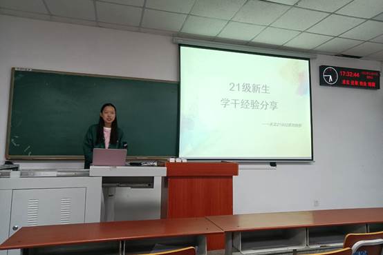 环境21901班班长许静进行了主题为“不忘初心,牢记使命”的分享。环境21901班班级凝聚力强,学风好,班级四级(91.67%)和六级(28%)通过率均位于全年级第一。作为班长,许静从班级建设,包括团建、联谊、营造学习氛围等方面;对班委的管理,包括制定学习计划,建立学习小组,开展主题班会,通知转达等方面进行分享,强调班委要有责任心,有想法、有计划、有分工。