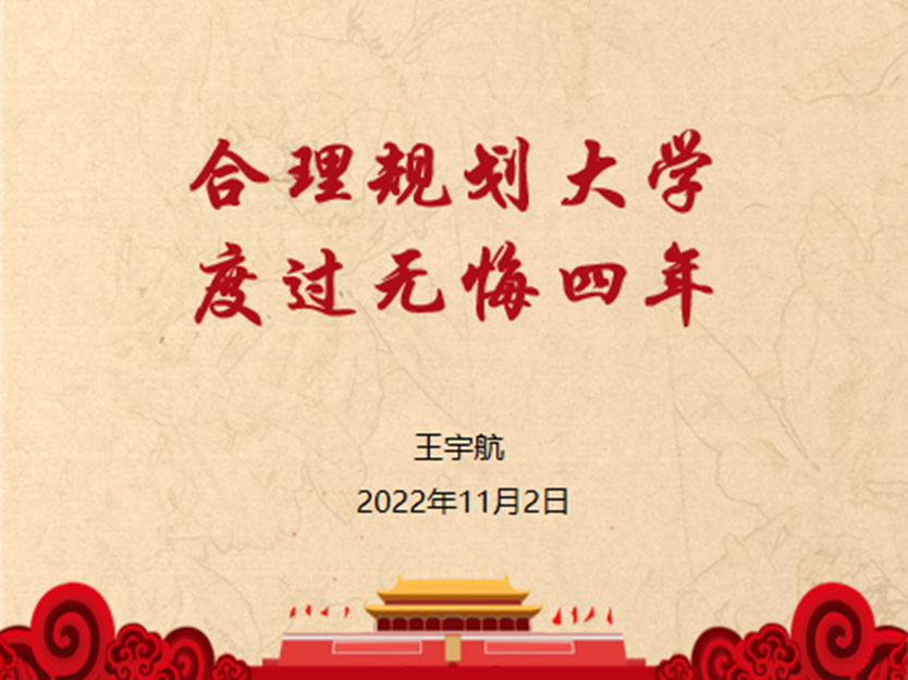 (通讯员 陈锦/图 陈锦 邱语嫣/文)怎么合理安排老员工活,如何坚持住最初的梦想?为营造积极健康的学习生活环境,帮助大一新生更快适应老员工活的角色转换,十一月二日晚七点,太阳成集团tyc539本科生党支部副书记王宇航同学,以腾讯会议的形式开展了以“合理规划大学,度过无悔四年”为主题的导师组讲座。本次讲座由员工辅导员黄鹏老师主持,全体22级同学参加。