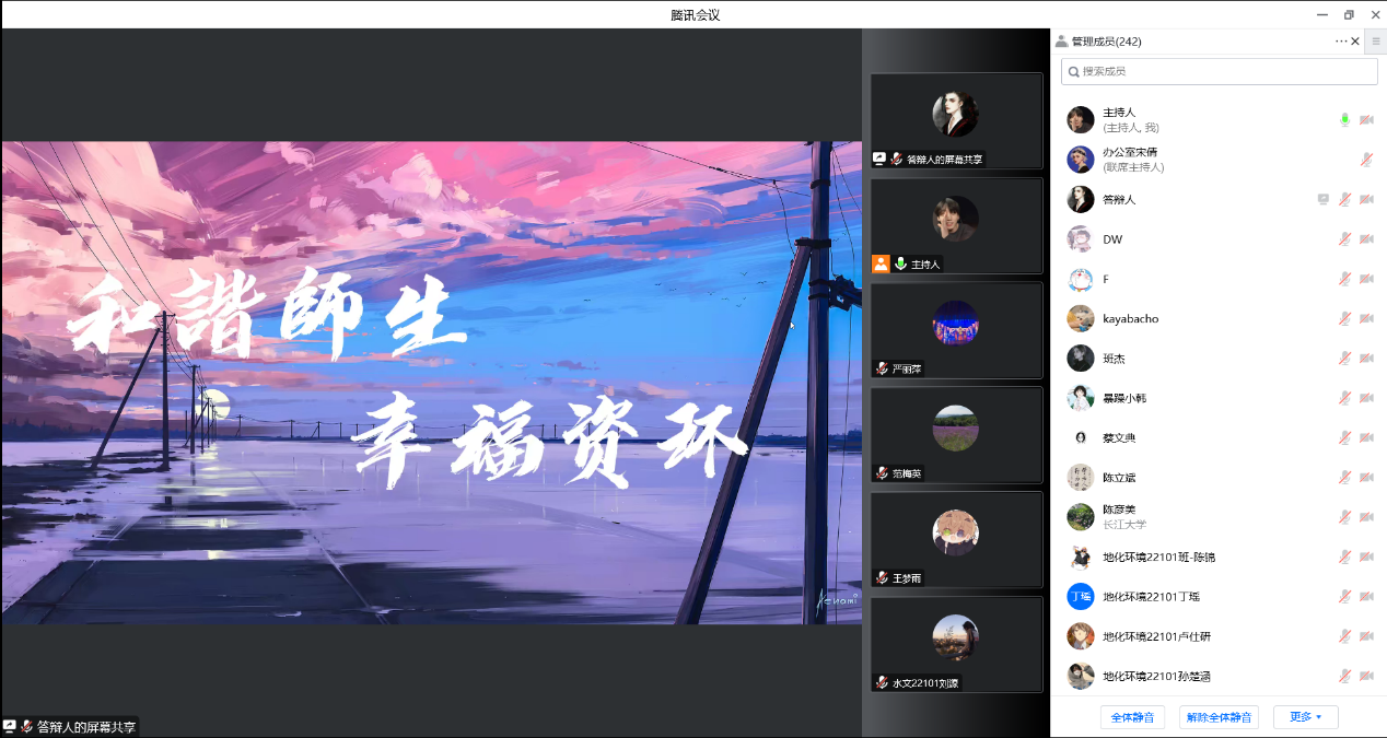 本次“和谐师生,幸福资环”活动虽然以线上答辩形式展开,但学员们的精彩表现仍旧点燃了观众们的激情,向各位大一新生们做出了榜样,同时我们也期待在未来的日子里,会闪耀出更加明亮的资环之星,诞生更加和谐的幸福班级,共同创造我们太阳成集团tyc539更美好的明天!
