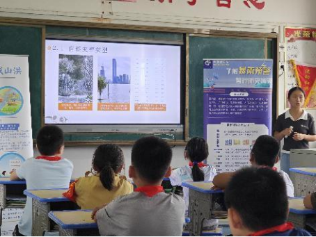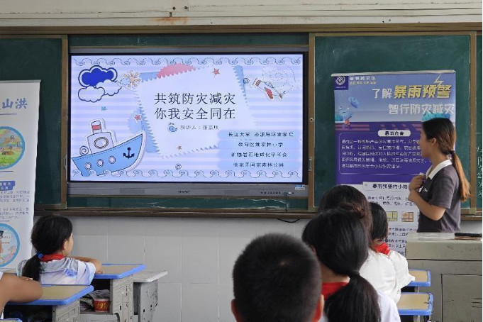 实践队成员们受到了姚家林小学师生的热烈欢迎,蒲嘉欣同学以生动有趣的语言,为小员工们深入浅出地讲解了地质灾害的基本知识,包括地质、气象灾害的成因、类型、危害及预防措施等。她通过鲜活的案例,让复杂的防灾知识变得通俗易懂,同学们在轻松愉快的氛围中掌握了防灾减灾的关键要点。