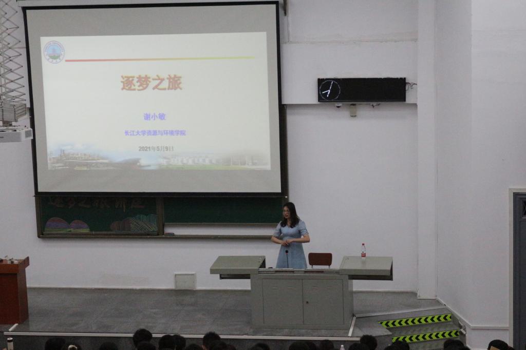 谢小敏教授毕业于南京大学,同时也是南京大学矿物岩石矿床学的硕士,并在德国亚琛工业大学石油地质学专业中取得了博士学位。在讲座中,谢小敏教授以自己的亲身经历作为引子,向同学们展示了她的追梦路程,贵阳的小山村,大学的良师,以及求知路上经历的苦难,谢小敏教授想告诉同学们的是,在追逐梦想的这条道路上,可能充满磨难,可能充满险阻,但保持有一颗勇敢追逐的心,我们离梦想一定会越来越近。