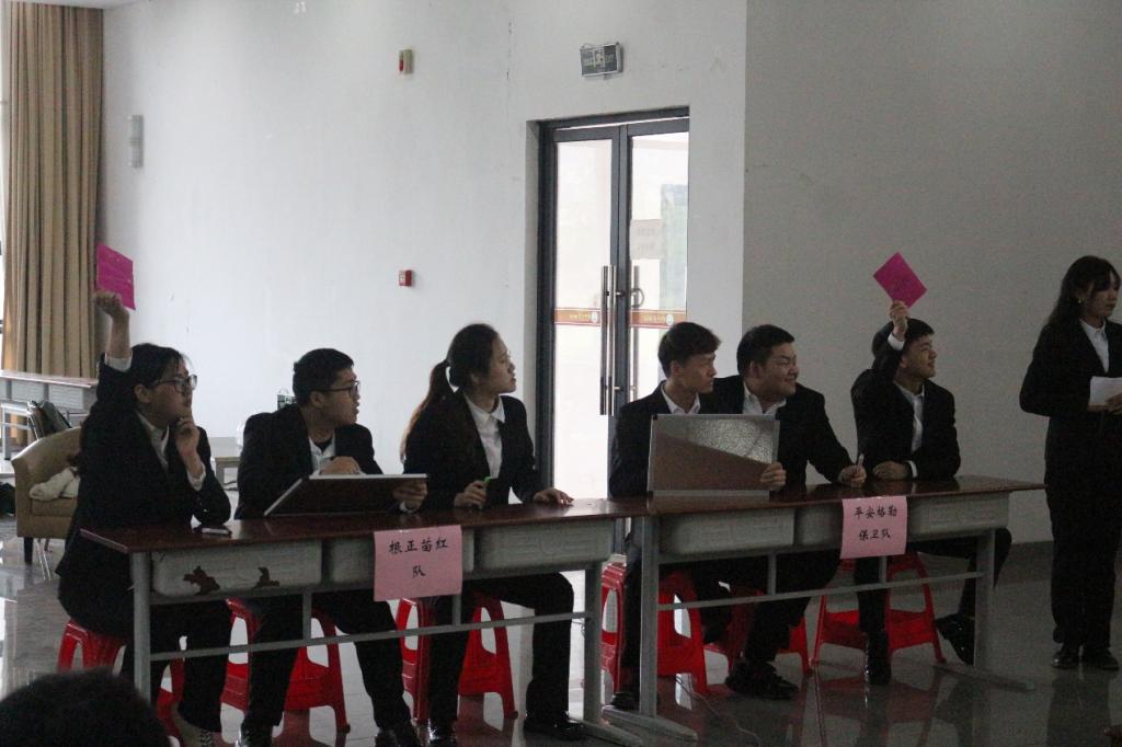 复赛分为上半场,下半场以及决胜场。以抢答的形式一站到底。选手们难分伯仲,最终三个优秀的队伍险胜进入决胜赛。决胜赛的题目难度加大,优秀的选手却毫不逊色,趁胜追击。比赛进入紧张的最后阶段,优胜队伍以满分的成绩获得了本次知识竞赛的第一名。