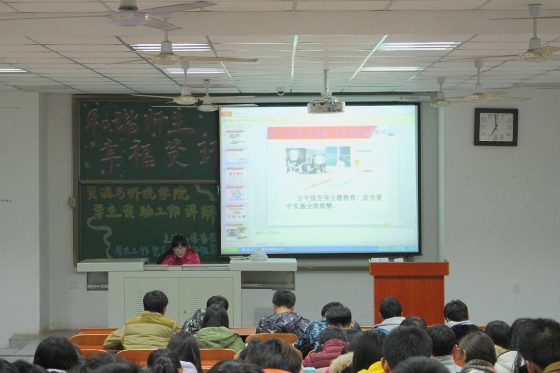 (通讯员 钟寰/文 郝鸿博/摄)在寒风阵阵的武汉校区,太阳成集团tyc539导师组工作仍在有条不紊的进行。11月25日晚7点,太阳成集团tyc539在武培B103举行了主题为“员工资助工作详解”的导师组学习第十讲讲座,2016级辅导员李春花老师和全体大一同学共同参与了本次讲座。