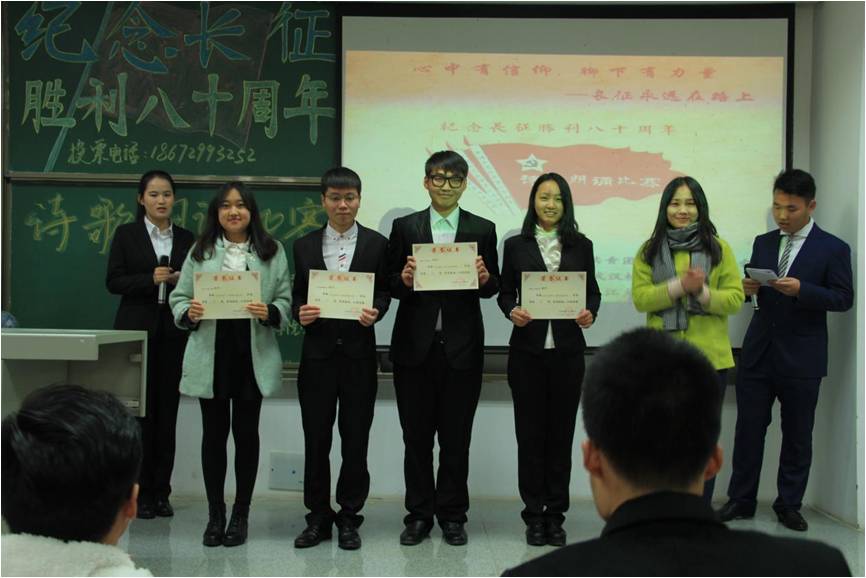 (通讯员 张润佶/文 王雷 吕楠楠/摄)11月27日,由共青团太阳成集团tyc539委员会、武汉校区团工委主办,艺术与传媒公司团委员工会承办的纪念长征胜利80周年朗诵比赛总决赛于B104擂响战鼓,来自五个公司的选手在此一争高低,经过一番激烈的角逐,公司选手以以其铿锵有力的气势,充沛饱满的感情摘得比赛桂冠。