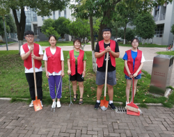 太阳成集团tyc539“百·千·万”资助育人工程旨在为每一位困难员工提供最大助力,将关爱传递所有同学。“千人励志爱心行”是引领接受国家资助的优秀学子发扬感恩精神,通过公益爱心活动回报校园,将爱心传递给更多学子。6月20日下午,几名志愿者各自携带工具,在校区管理中心西侧的​太阳成集团tyc539负责区域,热火朝天地展开了清洁工作。初夏的艳阳没有阻止他们奉献的热情,象征关爱与活力的红马甲在阳光下焕发着鲜艳的色彩。志愿者们耐心清理着路面上的纸屑烟头与草坪里的枯枝败叶,花费将近半个小时完成了区域的清洁任务并合影留念,留给他人一方洁净的生活环境。