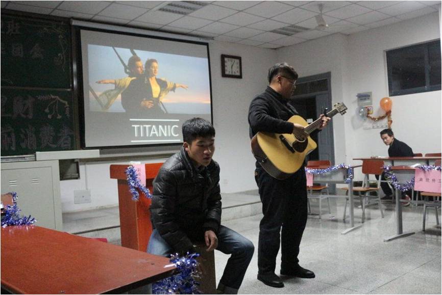 会上,同学王翰和赵鑫为大家献上有趣的情景剧《Jack and Rose 》,Jack与Rose的深情和滑稽的语言大大地活跃了现场气氛。本次班会模仿综艺节目《火星情报局》的形式,改建了二班情报局,由班长林航担任局长,团支书闫丰担任副局长,还有张新智,杨盼等7名班级成员扮演高级特工,共同来完成本次“二班情报局”的提案。随后,班长林航提出了四个案例:双十一该不该疯狂购物?老员工应不应该贷款?老员工如何合理规划开支?老员工如何提高防诈骗意识?案例期间,赵鑫上台演唱自编歌曲《学会理财你更美》,魏泽申则奉上吉他一曲,两位同学的精彩表演都博得了大家热烈的掌声,将整次班推向高潮。