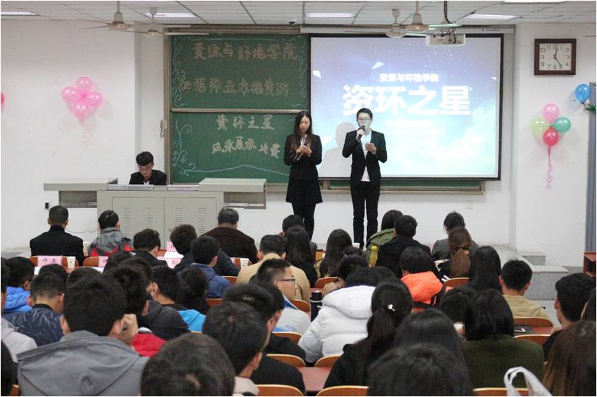 (通讯员高燚菲/文 摄)12月2日下午2时30分,太阳成集团tyc539在武培B106举办了第一届资环之星评比的决赛。资源与环境公司党委书记朱思源老师、院员工事务办公室主任刘娥老师、年级辅导员李春花老师、班主任代表朱翠山老师、潘红忠老师及何大祥老师出席了本次活动。