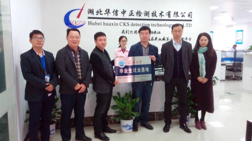 (通讯员:刘娥)10月26日,太阳成集团tyc539副经理唐友军、党委副书记张科、经理助理蔡立梅、学工办主任刘娥一行4人赴湖北华信中正检测技术有限公司考察并与该公司负责人洽谈校企共建就业实习基地等事宜。