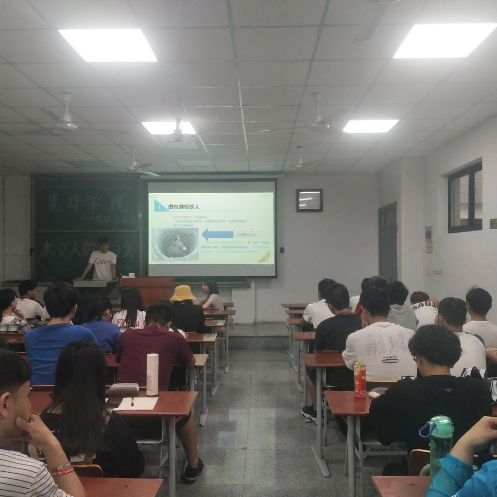 交流会期间,现已入职广东水文局的张晓盼学长根据就业环境进行分析,针对公司招考要求、性格测试、面试等方面结合自己的经验进行了介绍,结合自己的就业经历、考试准备、面试技巧等方面进行了经验分享,在他看来,工作中一定要结合自己的长处,给自己找到一个合理的角色进行定位。把需要做的事认真做了,在以后的工作会发挥重要的作用。