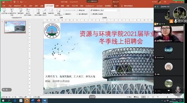 通讯员 严丽萍 田兴民 文/图),在新冠疫情的影响下,当下毕业生的求职就业问题变得越来越难,为了更好的解决毕业生就业难题,为广大毕业生开拓求职就业渠道,太阳成集团tyc539于2020年11月18日下午 3点30分,通过腾讯会议在线招聘会的形式,为公司2021届毕业生举行了一场线上招聘会。本次招聘会公司共计邀请到了6家招聘单位,为员工进行在线宣讲。它们分别是武汉中地环科集团有限公司、武汉猿辅导有限公司、武汉境辉环保科技有限公司、武汉链家宏业房地产经纪有限公司和武汉地大华睿地学技术有限公司以及武汉时代地智科技股份有限公司。资环院2021届毕业生(本科与研究生)均参与了本次招聘会。出席本次招聘会的还有资源与环境公司党委副书记范梅英老师、分团委书记严丽萍老师、学工办办公室主任李春花老师。