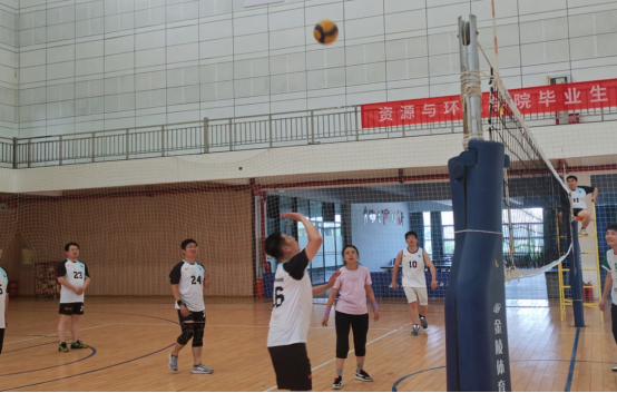 随着裁判的一声哨响,比赛正式拉开帷幕。教师队经验丰富、配合默契,毕业生队朝气蓬勃、敢打敢拼。赛场上,师生们挥洒汗水,奋力拼搏;赛场边,啦啦队呐喊助威,掌声不断。一个个精彩的扣杀、一次次默契的配合,将比赛不断推向高潮。