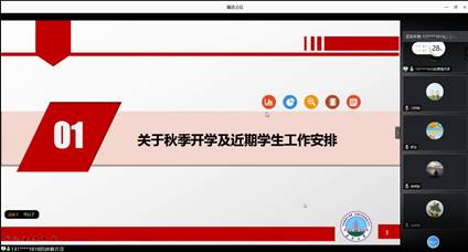首先,范梅英书记汇报了暑假重点工作的进展及存在的主要问题。随后讲到秋季开学的工作实施方案,包括,员工报道安排、公司审批标准、公司员工到校时的报道方法等等。范梅英书记讲到,本次开学务必做好员工到校后的校园管控,做到对个人和家庭负责,对国家和社会尽责!最后分别讲述了本科生和研究生的教学工作安排。