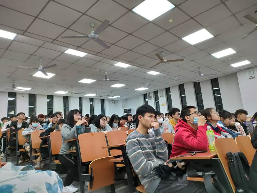 讲座进行时,同学们认真听取建议,时不时低头做笔记。一场讲座,让同学们受益匪浅。讲座结束,同学们整理好笔记有序退场,为此次讲座留下了一个完美的句号。相信同学们对自己的老员工活都有了更高的期待,也会在以后的日子中规划好自己的未来,让自己的大学四年过得更加精彩。