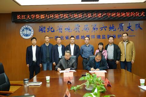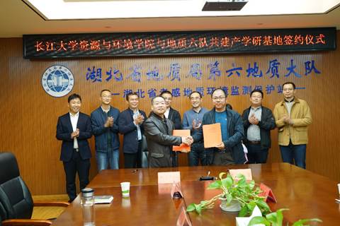 会议伊始,文志刚经理和周文平书记分别介绍了各单位的基本情况,随后双方就人才培养、员工就业、科研合作等方面进行了深入交流。赵红静副经理结合公司本科生培养现状,提出与地质六队在孝感周边共同建设野外实习地质线路;徐耀辉副经理提出设立研究生工作站及公司产品的双导师制等相关事项。双方就前期共同申报立项的湖北省地质局科研项目的研究进展进行了交流,并表示以此为基础,在项目申报、科研成果转化等方面进一步深化合作。会议最后双方达成共识,共同签订了产学研基地共建合作协议。
