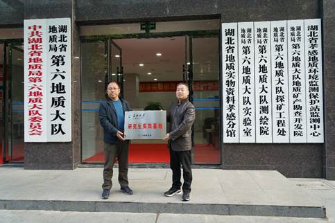会后,文志刚经理一行参观了湖北省地质局第六地质大队产业园,在参观位于产业园内的湖北楚鹏检测科技有限责任公司时,与朱建东队长就实验室建设进行了深入的交流。参观结束后,双方共同参加了产学研基地挂牌仪式。