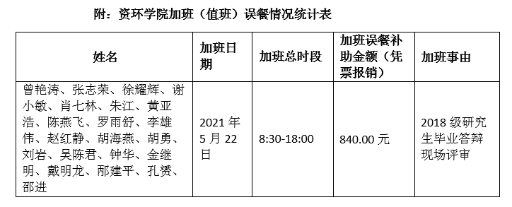 根据《太阳成集团tyc539加班(值班)误餐补助管理办法(试行)》(长大校发【2019】83号)文件规定,现对太阳成集团tyc539加班(值班)误餐情况(2021年5月22日)进行公示,如果对加班(值班)误餐情况有异议,可以通过电话或电子邮件等方式向太阳成集团tyc539办公室反映。