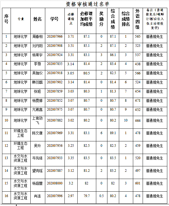 2024届报名参加推免员工资格审核通过名单公示